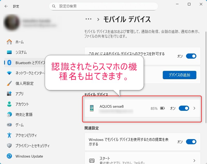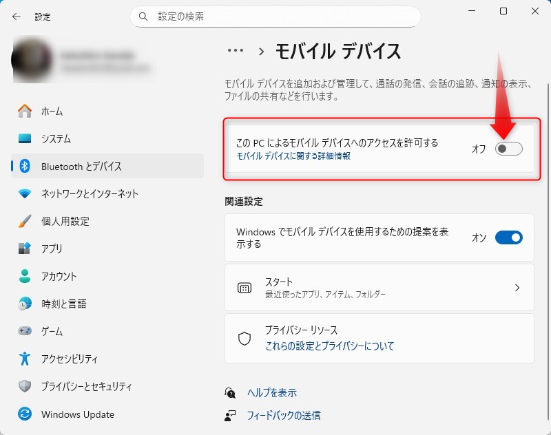 その中の一番上にある「このPCによるモバイルデバイスのアクセスを許可する」が「オフ」になっていたら「オン」にしてください。