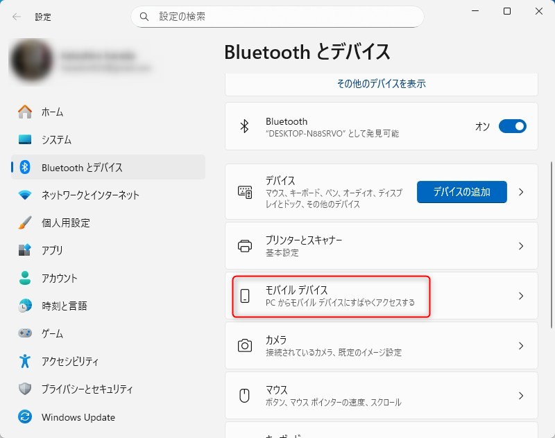 右側のメニューから「モバイル デバイス」をクリック、